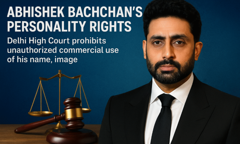 दिल्ली हाई कोर्ट ने अभिनेता अभिषेक बच्चन के व्यक्तित्व अधिकारों (Personality Rights) की रक्षा करते हुए ऐतिहासिक फैसला सुनाया है। अदालत ने साफ कर दिया है कि अब उनकी नाम, तस्वीर, आवाज़ या किसी भी प्रकार की likeness का बिना अनुमति व्यावसायिक उपयोग नहीं किया जा सकेगा। इस आदेश के बाद किसी भी कंपनी, ब्रांड या वेबसाइट को अभिषेक बच्चन की छवि का commercial exploitation करने से पहले उनकी अनुमति लेनी होगी।